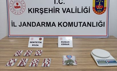 Kaman ve Mucur ilçeleri ile Kırşehir merkezi dahil olmak üzere belirlenen adreslere yapılan baskınlarda, toplamda 2 bin 198 sentetik hap, 445 gram kubar esrar ve 1 adet hassas terazi ele geçirildi.