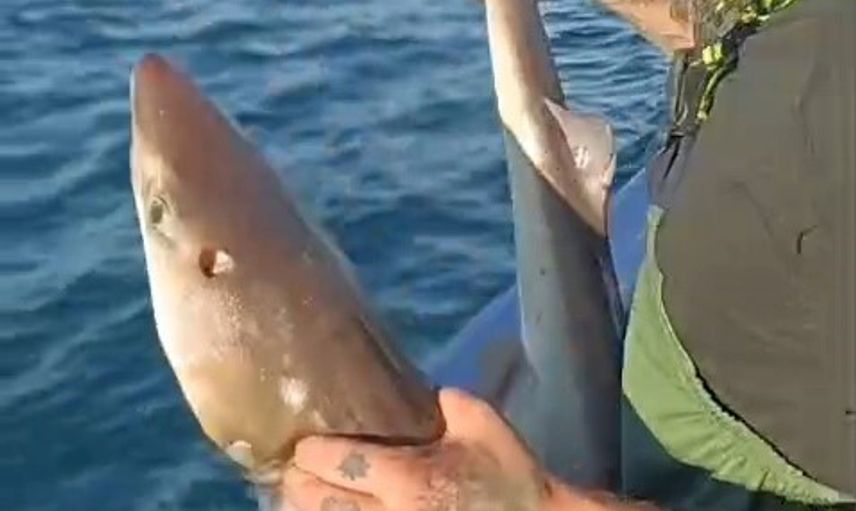 Püsküllü, tekneye aldığı köpekbalığını kontrol ettikten sonra canlılığını tespit etti. Türün zarar görmemesi için dikkatli bir biçimde tutarak, hiçbir müdahale veya zorlama yapmadan hayvanı doğal yaşam alanına geri gönderdi.