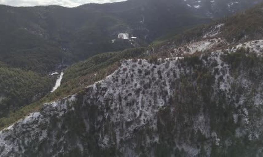Soğuksu Milli Parkı, beyaz örtüyle kaplandığı anlar drone ile havadan da görüntülendi ve ortaya kartpostallık kareler çıktı.