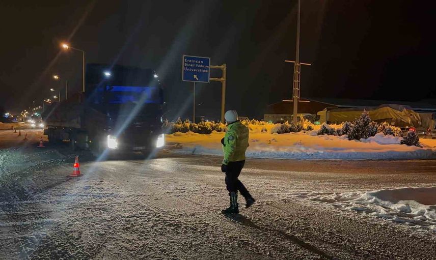 Erzincan’dan Sivas yönüne giden araçlar Üniversite Kavşağı’nda durdurularak bekletildi.