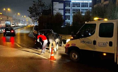 Kocaeli Büyükşehir Belediyesi Yol Yapım Bakım ve Onarım Dairesi Başkanlığı'na bağlı A Takımı ekipleri, Şehir Hastanesi Köprülü Kavşağı mevkiinde seyir halindeyken maddi hasarlı bir trafik kazası fark etti.