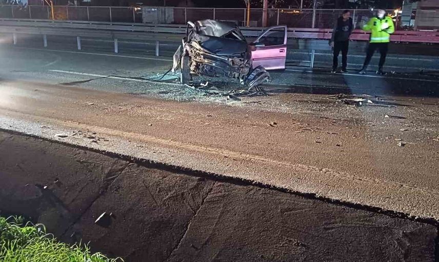 Kocaeli D-100'de otomobil demir bariyere çarparak parçalandı