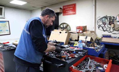 Ulaşım Dairesi Başkanlığı Makine İkmal Şube Müdürlüğü ekipleri, araç filosunun periyodik bakımlarını ile mekanik ve elektrik kaynaklı arızalarını belediyenin atölyelerinde gideriyor. Dış kaynak kullanımını azaltarak bütçede tasarruf hedefleyen ekipler; şarj ve marş dinamoları, aydınlatma sistemleri ve elektrik tesisatları gibi işleri kurum personeliyle onarıyor.