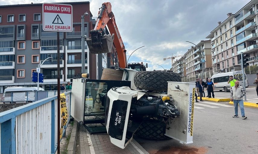 Kocaeli'de İş Makinesi Devrildi
