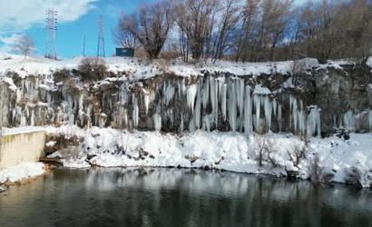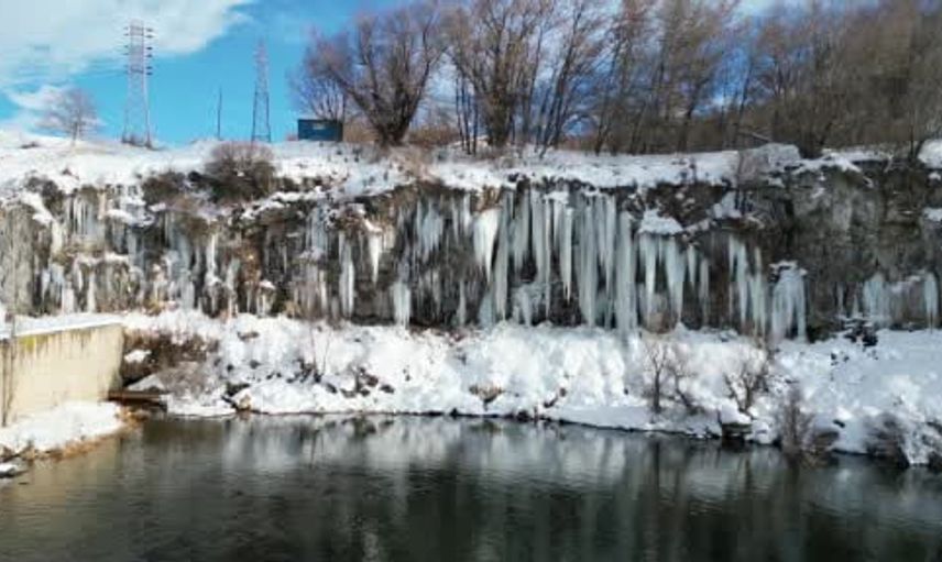Van'ın Erciş ilçesindeki Koçköprü Kanyonunda oluşan metrelerce yüksekliğindeki buz sarkıtlar ziyaretçilerin dikkatini çekiyor. Geçtiğimiz hafta etkili olan kar yağışının ardından hava sıcaklıkları gündüz 3 ila 5 derece, gece ise -10 dereceye kadar düşüyor. Gündüz eriyen kar, gece yeniden donarak dev buz sarkıtlarının oluşmasına neden oluyor.