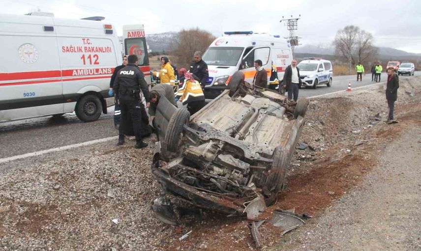 KONYA’NIN BEYŞEHİR İLÇESİNDE DEVRİLEN OTOMOBİLDEKİ AYNI AİLEDEN 6 KİŞİ YARALANDI.