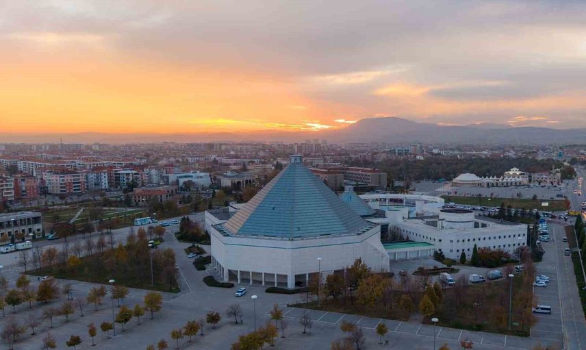Konya'nın tarihi ve kültürel mekanları, akşam saatlerinde gökyüzünde beliren kızıl tonlarla birlikte kartpostallık sahneler oluşturdu. Farklı zaman dilimlerinde drone ile kaydedilen görüntüler, şehrin siluetini ve mimari dokusunu öne çıkardı.