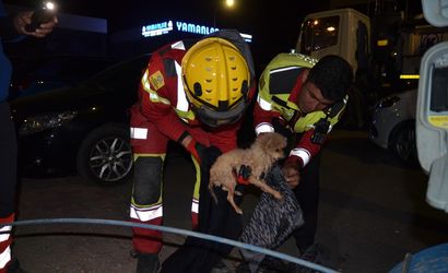 Konya'nın Karatay ilçesinde, itfaiye ekipleri bir köpek yavrusunu kanalizasyon borusundan kurtarmak için 6 saatlik yoğun bir çaba sarf etti.