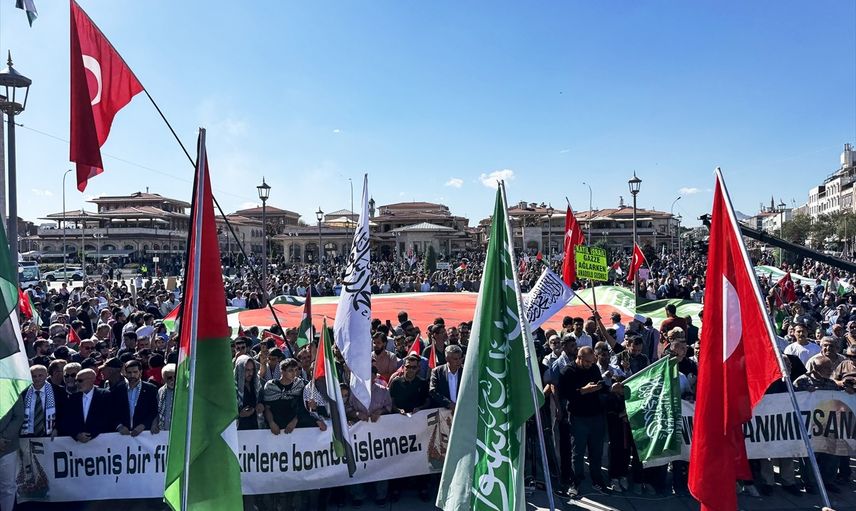 Katılımcılar, yürüyüş sırasında İsrail aleyhine sloganlar atarken, Konya Sivil Toplum Kuruluşları Platformu Başkanı Adem Ceylan, burada bir konuşma yaparak, Aksa Tufanı sonrasında hiçbir şeyin eski düzenine dönmeyeceğini vurguladı. Ceylan, Filistin'deki yıkıma dikkat çekti ve Gazze'nin özgür bir memleket olarak direniş gösterdiğini ifade etti.