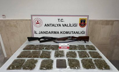 Antalya İl Jandarma Komutanlığınca Korkuteli ilçesinde uyuşturucu ile mücadele kapsamında gerçekleştirilen operasyonda, şüphelilere ait ikamet ve araçlarda yapılan aramalarda 16 kilo 880 gram skunk, 2 tüfek ve 1 hassas terazi ele geçirildi.