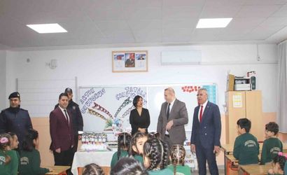 AYDIN'IN KÖŞK İLÇESİNDE YARI YIL TATİLİNE GİREN 4 BİN 349 ÖĞRENCİ KARNE HEYECANI YAŞARKEN, ADNAN MENDERES İLKOKULU ÖĞRENCİLERİ KARNELERİNİ KAYMAKAM HASAN TAŞ’IN ELİNDEN ALDI.