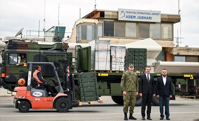 Kosova Başbakanı Albin Kurti (ortada), sosyal medya hesabından yaptığı paylaşımda, binlerce Skydagger kamikaze dronunun ülkeye ulaştığını açıkladı.