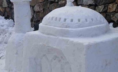 Salih İspir, mahallede cami bulunmaması üzerine yoğun kar yağışını fırsat bilerek sembolik bir kardan cami yaptı.