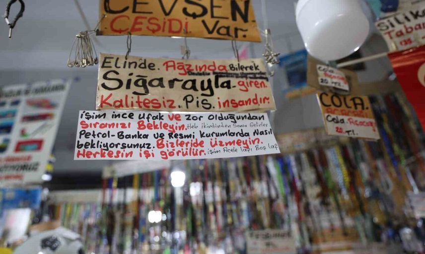 Mehmet Canbolat, 44 yıldır Saimbeyli Caddesi’nde kırtasiye, elektronik ve çeşitli ürünler satan 69 yaşında bir esnaf. İş yerinin dört bir yanına astığı notlarla müşterilerine ve çevresine yönelik gözlemlerini, sitemlerini ve hayat derslerini paylaşıyor.