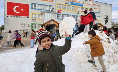 Toros Dağları eteklerindeki Saimbeyli ilçesinden kamyonlarla getirilen kar, Adana'nın Kozan ilçesindeki Halit Dağlı İlköğretim Okulu bahçesine döküldü. Yarıyıl tatili öncesi hazırlanan etkinlikte çocuklar okul bahçesinde kar topu oynayıp doyasıya eğlendi.