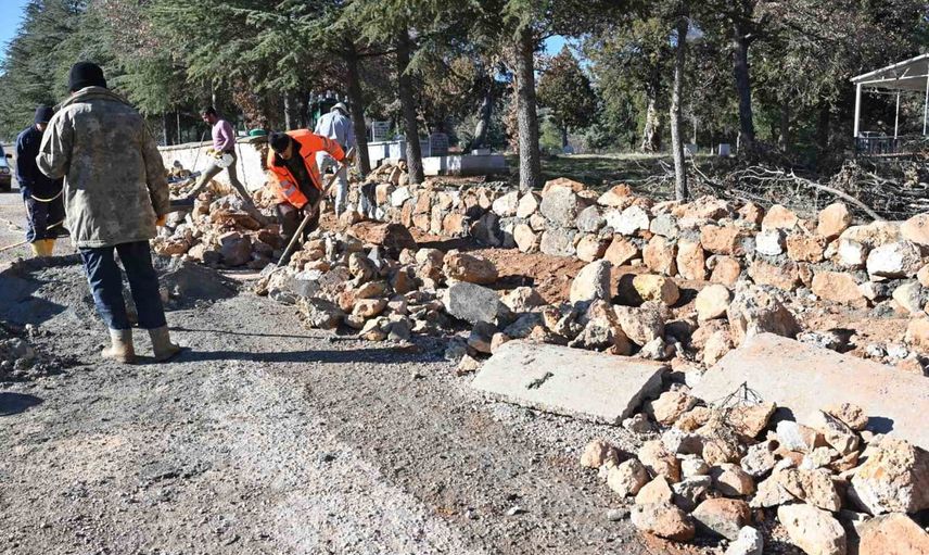 Kozluca köyünde yıkılan mezarlık duvarı Isparta Belediyesi tarafından onarıldı