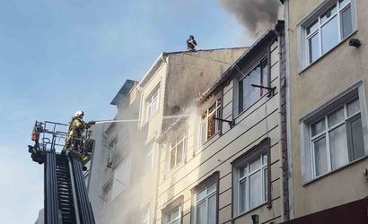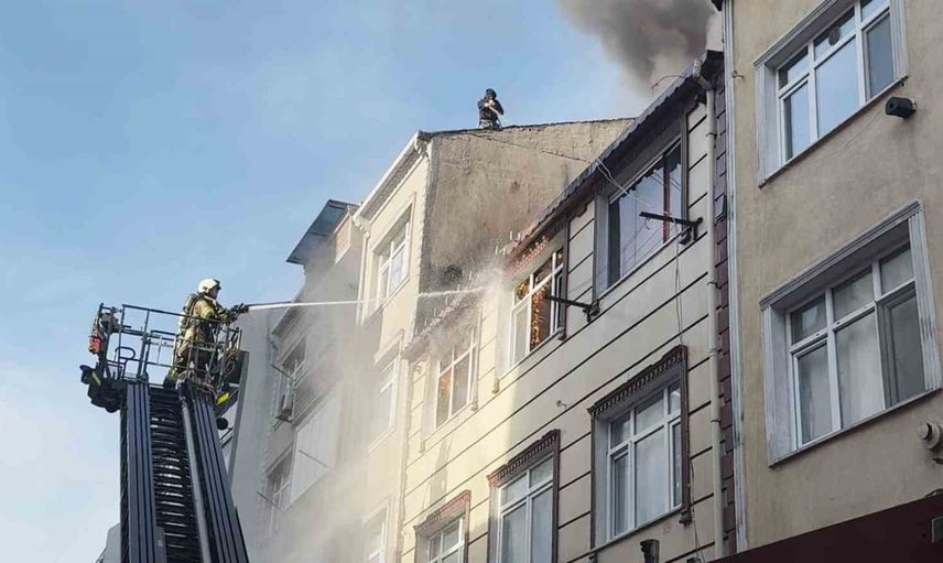 Küçükçekmece'de 3 katlı binanın çatı katı alev topuna döndü
