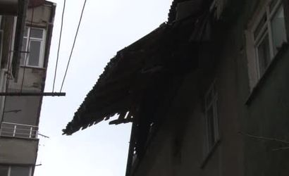 Küçükçekmece’de fırtına sonrası çatı parçaları komşu binaya savruldu