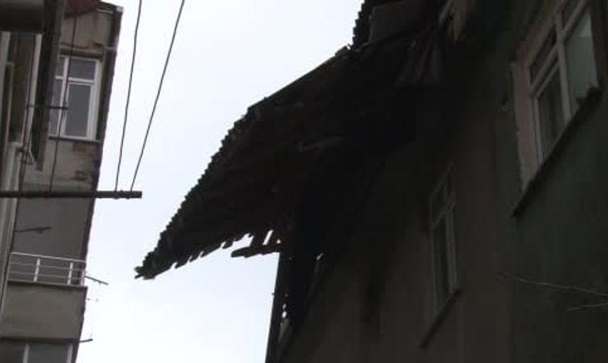 Kuvvetli rüzgâr ve yağışın etkili olduğu anlarda bir binanın çatısı koparak parçalar halinde yakındaki 5 katlı başka bir binanın üzerine savruldu. Olay, bina sakinleri ve sokaktaki vatandaşlarda korku ve paniğe neden oldu.