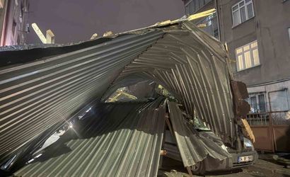 Küçükçekmece'de çatıyı koparan şiddetli rüzgar: 3 araç hasar aldı