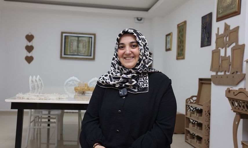 Gülüfer Takı çocukluktan gelen el sanatları ilgisini sürdürdüğünü belirterek atölyede üretimin ve kişisel gelişimin devam ettiğini söyledi: 'Birçok branşta üretip satış yapıyoruz. KO-MEK eğitimlerimiz sürüyor; sürekli yeni teknikler öğreniyoruz.'