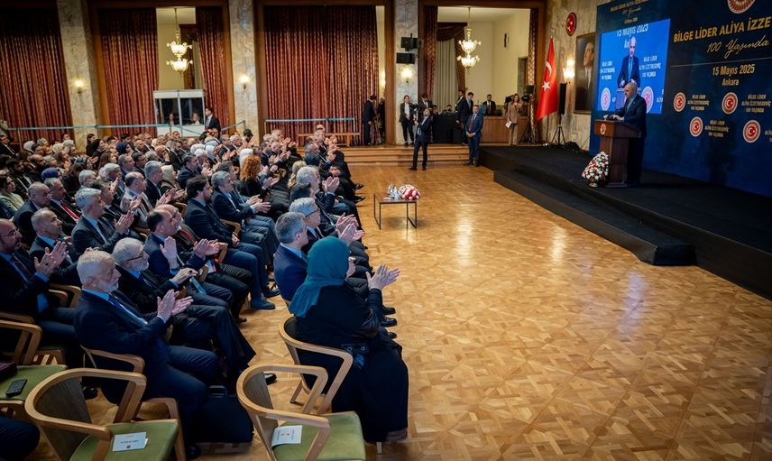 TBMM Tören Salonu'nda "Bilge Lider Aliya İzzetbegoviç 100 Yaşında" programı düzenlendi. Programa TBMM Başkanı Numan Kurtulmuş (ortada) da katıldı.
