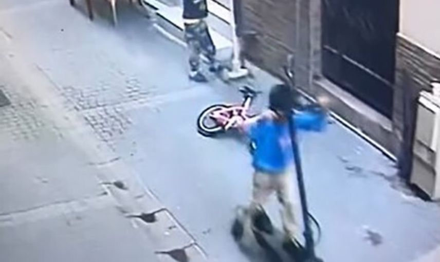 Bölgedeki bir iş yerinin güvenlik kamerasına yansıyan kayıtlarda, yaşları tahmini 6 ya da 7 civarında iki çocuğun görüldüğü, çocuklardan birinin boyundan büyük olan elektrikli scooter’a binip uzaklaştığı, diğer çocuğun ise elindeki oyuncak scooter’i bıraktığı görüntülere yansıdı.