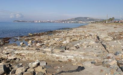Kuşadası kıyılarında Kadı Kalesi çevresinde tarihi yapılar dalgalarla ortaya çıktı