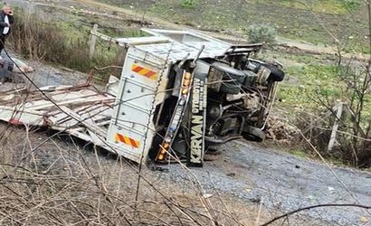 AYDIN'IN KUŞADASI İLÇESİNDE KAMYONUN KONTROLDEN ÇIKARAK TALİ YOLA UÇMASI SONUCU MEYDANA GELEN TRAFİK KAZASINDA 1 KİŞİ HAYATINI KAYBEDERKEN, 1 KİŞİ DE AĞIR YARALANDI.