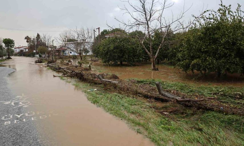Aydın’ın Kuşadası ilçesinde etkili olan sağanak yağışın ardından meydana gelen taşkınlar özellikle Davutlar Mahallesi ile Güzelçamlı’da ciddi zarara yol açtı. Yoğun su birikintileri bazı yolları ve açık alanları kullanılmaz hale getirirken, bahçeler göle döndü ve meyve ağaçları sular altında kaldı.