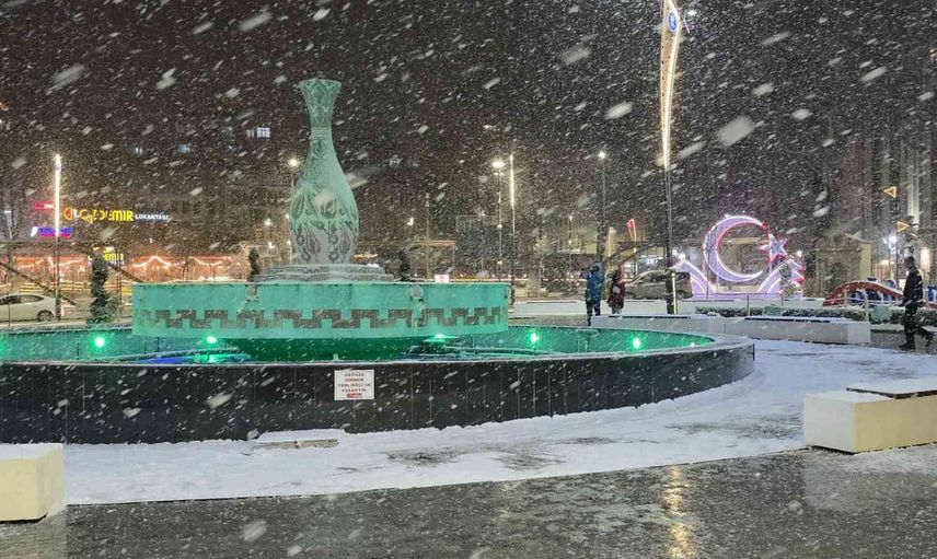 Zafer Meydanı'ndeki çinili vazo ve saat kulesi karla kaplanarak dikkat çeken görüntüler sundu. Meydana çıkan vatandaşlar karın tadını çıkarırken, bir kısmı kartopu oynadı, bazıları ise bu anları cep telefonlarıyla kaydetti.