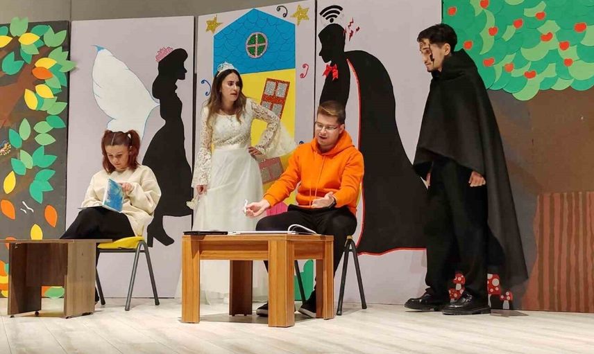 KÜTAHYA'DA DÜZENLENEN 'ÇEKMEZ KÖY' TİYATRO OYUNUNDA, ÖĞRENCİLERİN GÜNLÜK YAŞAMLARINDA GİDEREK ARTAN DİJİTAL ALIŞKANLIKLARI ELEŞTİREL VE MİZAHİ BİR ÜSLUPLA ELE ALINDI.
