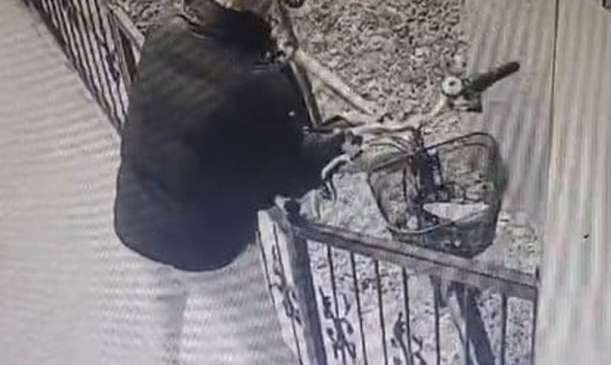 Güvenlik kamerası görüntülerine göre yaşı 15-16 civarında tahmin edilen şüpheli, bahçeye girer girmez çevreyi ve kamerayı kontrol etti. Ardından rahat tavırlarla bisikleti alıp bahçeden çıktı ve bisiklete binerek olay yerinden uzaklaştı.