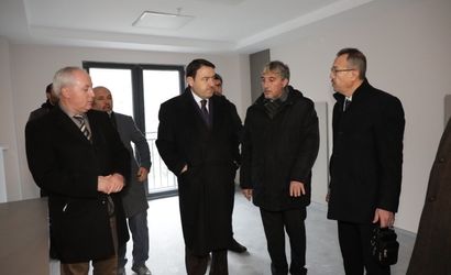 Kütahya Valisi Musa Işın, il protokolü ile birlikte yapımı devam eden öğretmenevi binasında incelemelerde bulundu.