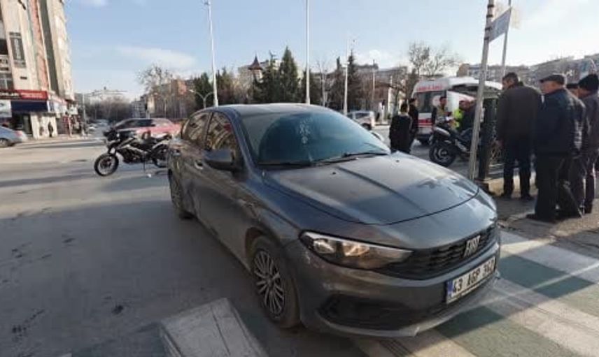 Kütahya kent merkezi Zafer Meydanında meydana gelen kazada, Fatih Sultan Mehmet Bulvarı'ndan Adnan Menderes Bulvarı yönüne seyreden bir otomobil ile motosiklet çarpıştı.