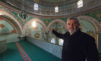 Cami imam hatibi Ahmet Türk ise yapının yapılış sürecine ve süslemelerin özelliklerine değinerek, caminin devlet ve halk iş birliğiyle inşa edildiğini ve içinin adeta bir çeyiz gibi işlendiğini belirtmiştir. Türk'ün aktardığına göre, caminin girişinde ve karşı duvarda yer alan iki 'helal' alanından birinde Fetih Suresi'nin başlangıcı, diğerinde ise küfi hatla Besmele-i Şerif bulunur; bu alanlarda dönemin tarikatlarına ait on dört tâci-i şerif de yer almaktadır ve 'Hepsi helalimizin gölgesi altındadır' mesajı verilmektedir.
