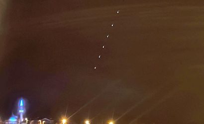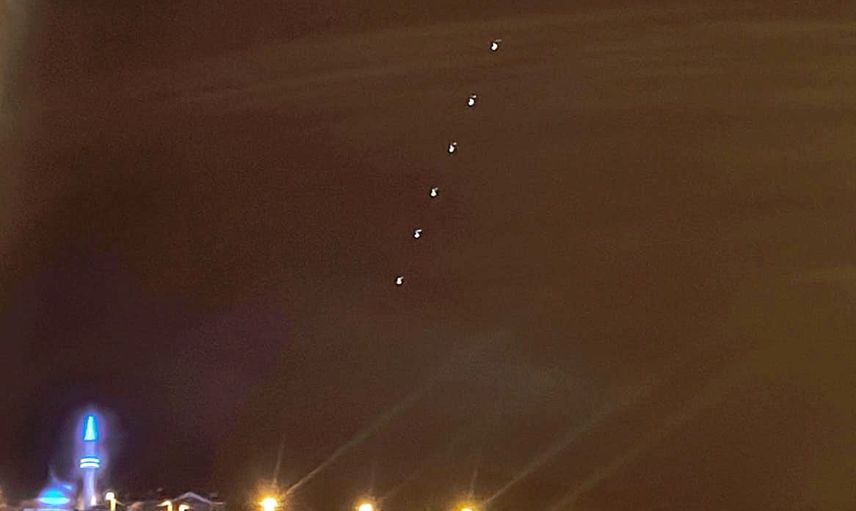 Gece gökyüzündeki sıra halindeki ışıklar vatandaşların dikkatini çekti