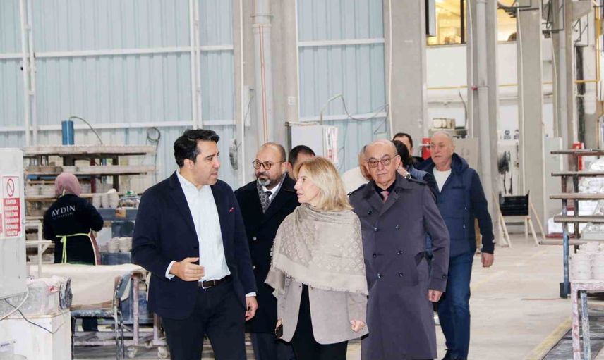 Fatih Aydın, fabrikanın sahibi olarak Esin Güral Argat ve beraberindeki yönetim kurulu üyelerine fabrikayı gezdirip üretim süreçleri, istihdam yapısı ve faaliyet alanları hakkında bilgi verdi. Heyet, el emeği ve geleneksel üretim anlayışını modern üretim teknikleriyle birleştiren fabrikadaki çalışmaları ilgiyle inceledi.