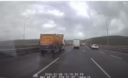 Kuzey Marmara Otoyolu'nun Kocaeli geçişinde seyir halindeki bir kamyonetin, etkili fırtına nedeniyle devrilme anı güvenlik kamerasınca kaydedildi.