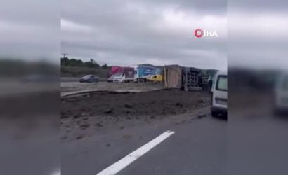 Kuzey Marmara Otoyolu üzerinde bir hafriyat kamyonu devrildi. Olayın ardından ekipler sevk edildi ve müdahale çalışmaları başlatıldı.