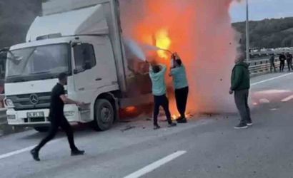 Kuzey Marmara Otoyolu'nun Beykoz Edirne istikametinde seyir halindeki bir kamyonun kasasında çıkan yangın, vatandaşların ilk müdahalesi ve itfaiye ekiplerinin çalışmasıyla kontrol altına alındı. Olayda yaralanma yaşanmadı, kamyon kullanılamaz hale geldi.