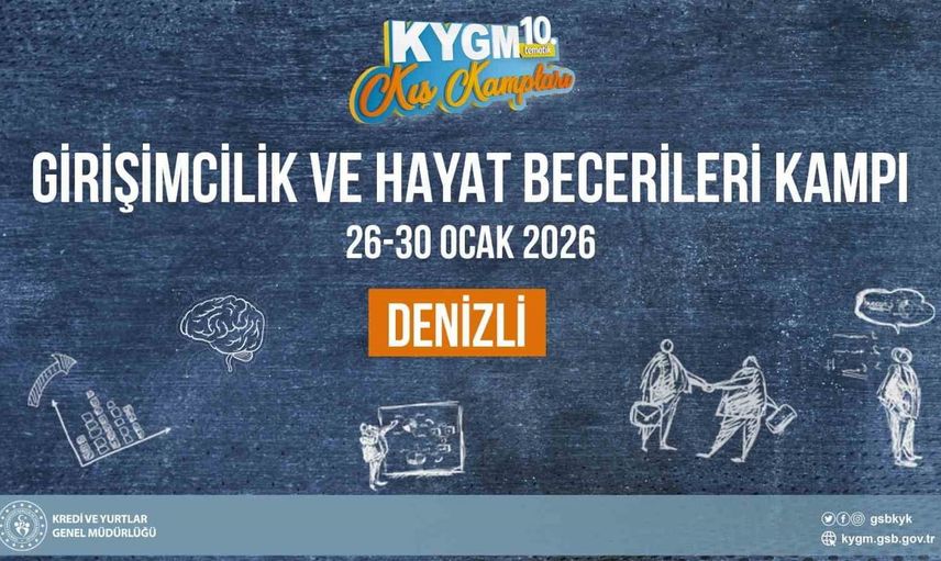 Gençlik ve Spor Bakanlığı'na bağlı Kredi ve Yurtlar Genel Müdürlüğü tarafından düzenlenen Girişimcilik ve Hayat Becerileri Kampı, 26-30 Ocak 2026 tarihleri arasında Denizli'de gerçekleştirilecek. Türkiye'nin dört bir yanından kampa katılacak 150 öğrenci, beş günlük yoğun bir programla buluşacak.