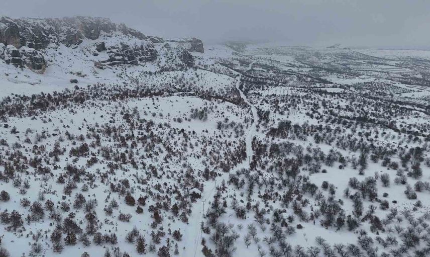 Eşsiz kaya oluşumları ve karla kaplı yamaçlar havadan görüntülendi. Ortaya çıkan fotoğraf ve videolar, bölgenin doğal dokusunun kış şartlarındaki etkileyici halini gözler önüne serdi.