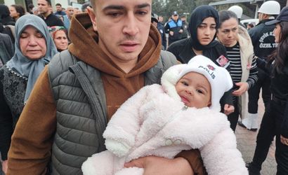 Anne Şerife Azmaz (53) ve eşi Melike Azmaz (26) ile diğer yakınları tören sırasında gözyaşlarına boğuldu. Genç polisin 8 aylık kızı ise babasını üzerinde 'polis' yazan beresiyle uğurladı.
