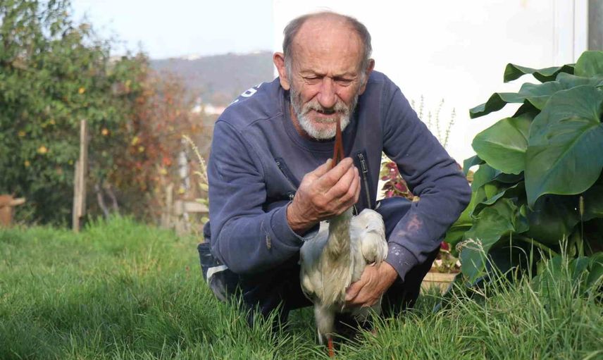 Sakarya’nın Kocaali ilçesi Bezirgan Mahallesi’nde annesinin iki kez yuvadan attığı ve kanatlarındaki yaralar nedeniyle uçamayan leylek, mahalle sakini Mehmet Topçu tarafından korumaya alındı. 'Ateş' adı verilen kuş, çevre sakinlerinin ilgisiyle adeta mahalleli bir birey haline geldi.