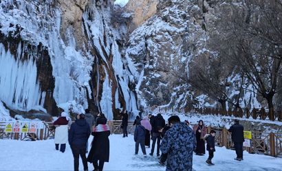 Donan şelaleyi görmek isteyen çok sayıda vatandaş bölgeyi ziyaret ederek kısmen buz tutan şelalenin ortaya çıkardığı görsel şöleni hayranlıkla izledi.