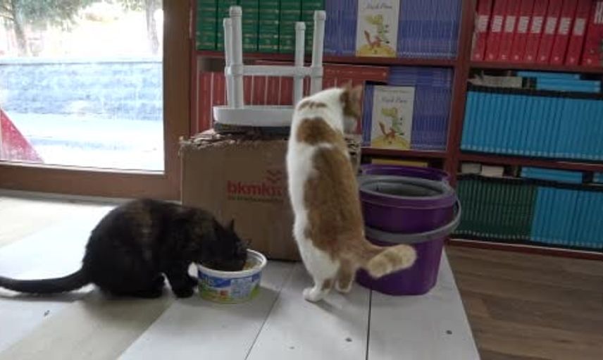 Malatya'da konteynerde sahaflık yapan Cihan Dede sokak kedilerine sahip çıktı