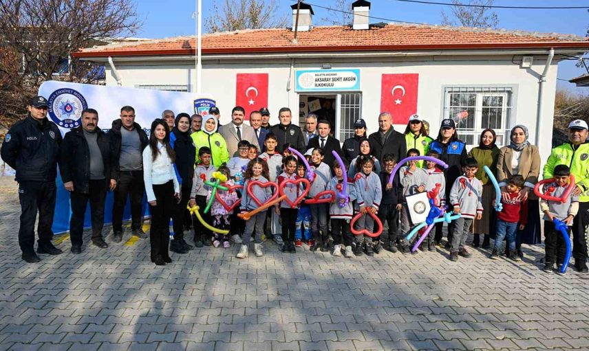 Malatya İl Emniyet Müdürü Kayhan Ay, DHMİ Malatya Havalimanı Müdürü Serdar Akyüz, İl Emniyet Müdür Yardımcısı Deniz Yılmaz ve emniyet personeli, Akçadağ ilçesindeki Aksaray Şehit Akgün İlkokulunu ziyaret etti.