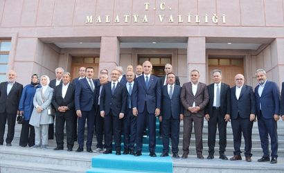 Malatya Kültür Yolu Festivali kapsamında temaslarda bulunan Kültür ve Turizm Bakanı Mehmet Nuri Ersoy, Malatya Valiliğini ziyaret etti. Bakan Ersoy, Valilik çıkışında protokol üyeleriyle fotoğraf çektirdi.