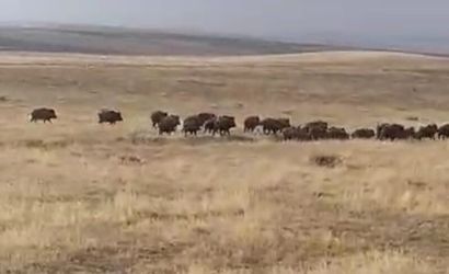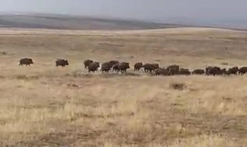 MUŞ'UN MALAZGİRT İLÇESİNDE BÜYÜK BİR YABAN DOMUZU SÜRÜSÜ GÖRÜNTÜLENDİ.